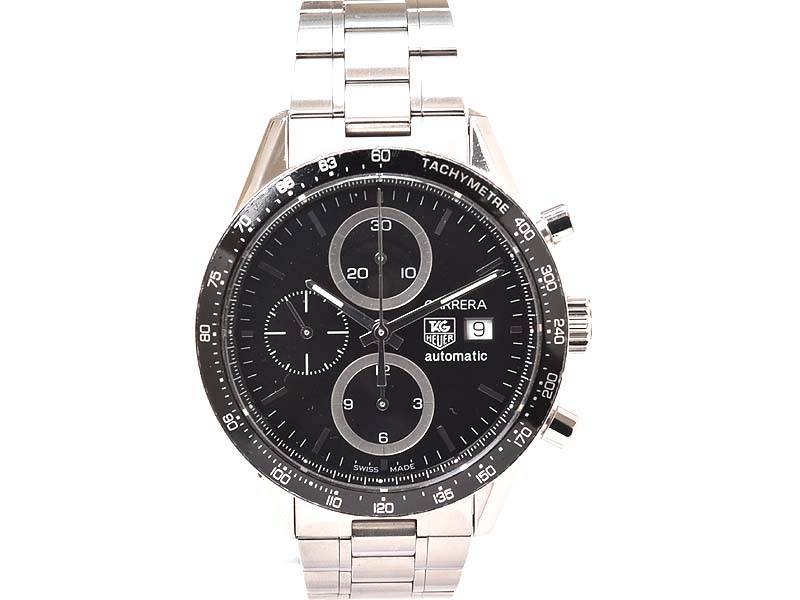 【TAG HEUER タグホイヤー】CV2010 カレラ クロノグラフ SS デイト 自動巻 黒文字盤 裏スケ メンズ