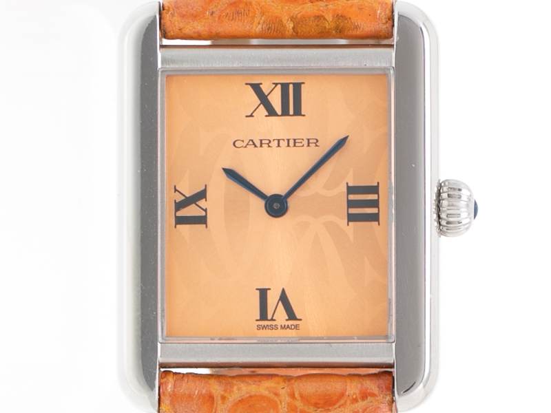 【CARTIER カルティエ】W1019455 タンクソロLM クォーツ SS/革 オレンジ メンズ