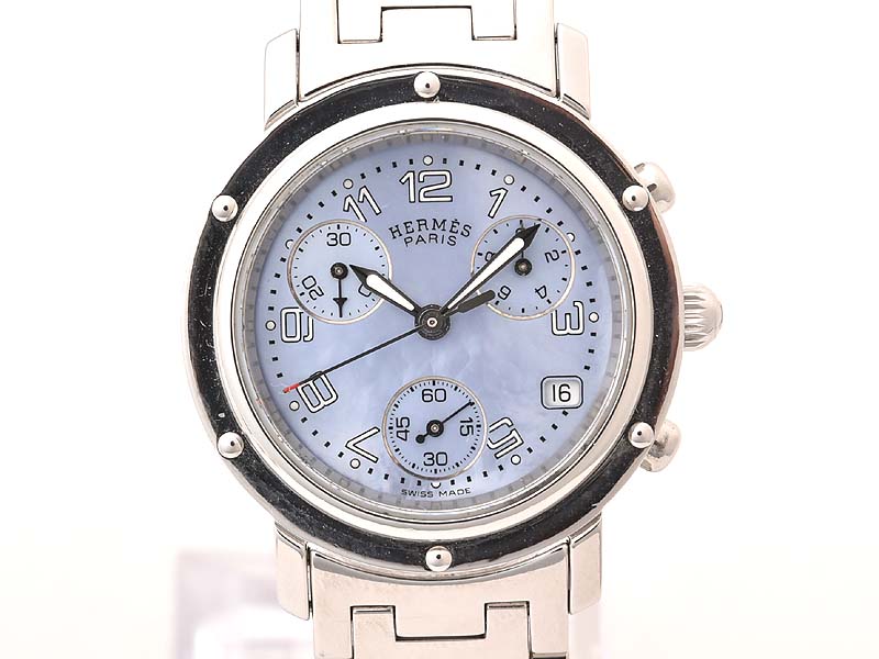 【HERMES エルメス】CL1.310 クリッパー クロノグラフ SS クォ―ツ シェル文字盤 デイト レディース