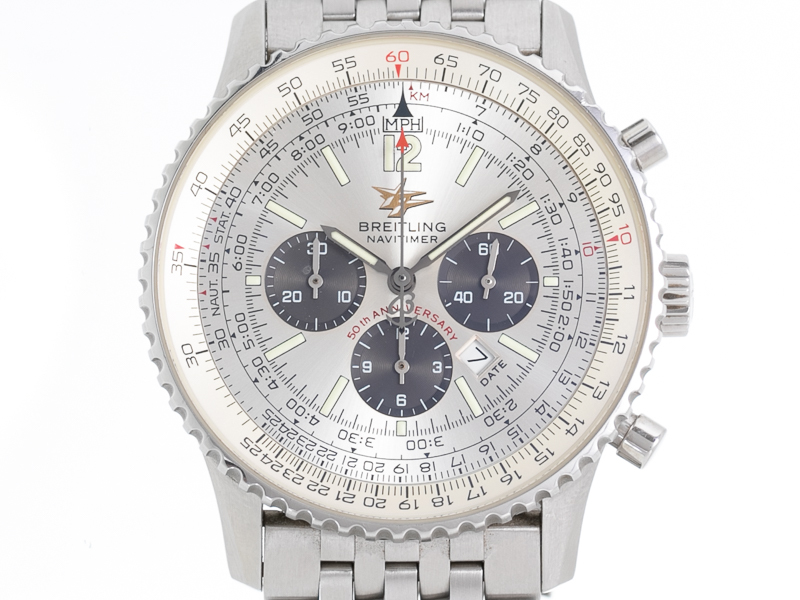 1952年、ブライトリング、航空用回転計算尺を装備したクロノグラフ、ナビタイマーを発表。フライトプランに必要なあらゆる計算を行うことのできるこの「腕に装備する計器」は、世界中のパイロットの人気の的となった。ブライトリングはすでに当時世界の主要航空会社のコックピット・クロックを共有していた。