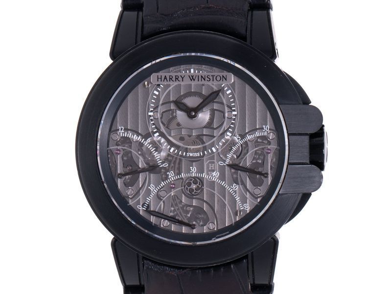 また、ハリー・ウィンストンの世界は、女性のジュエリーウォッチに留まるものではありません。紳士向けの時計のほとんどがジュネーブの時計職人の手作業による複雑時計であり、その中でも特にバイレトログレード(秒針と曜日をともに2本の扇形目盛りで表示)は世界初の気候です。複雑時計のラインナップは本格的な時計メーカーとして他に何ら引けを取りません。なお、文字盤とケース、ブレスレットはすべて自社生産されています。
