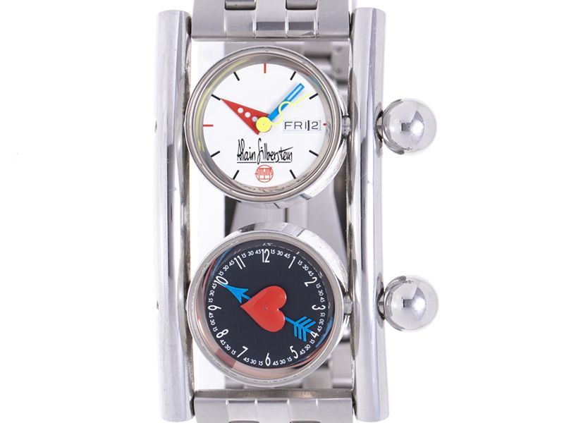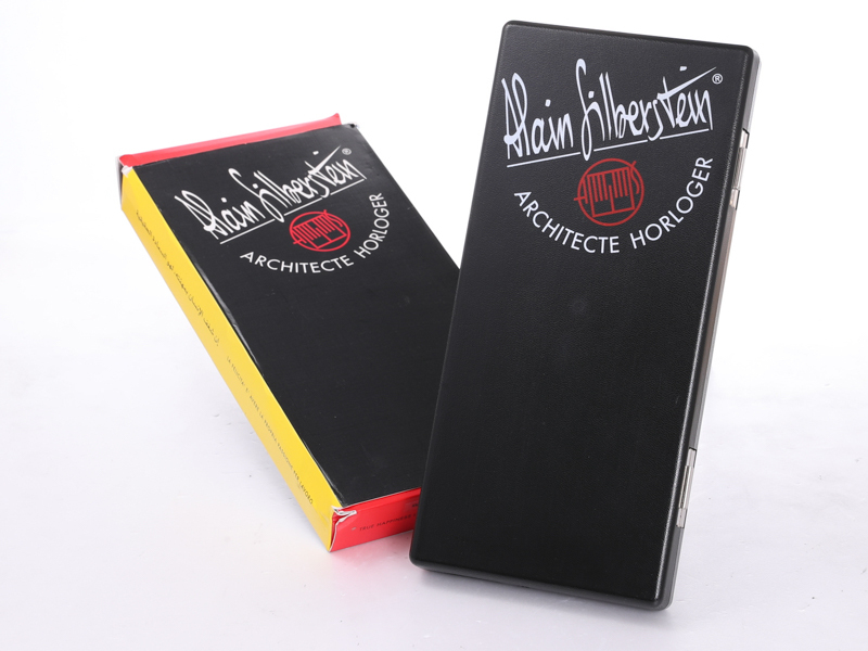 「機能はかたちに沿う」バウハウスの影響色濃いアラン・シルベスタインの各モデルが、色分けされた幾何学的形状の針やリューズと、直線的なケースのフォルムを特徴としています。彼にとって「完璧な」形と、全ての要素の調和を探求するためには、制作した作品への度重なるマイナーチェンジが必要となります。これによりいわば熟成を重ねたフォルムは、日常使いを想定した機能性とそれに沿うかたちの両面を兼ね備え、普遍的で廃れることの無いものに仕上がっていくのではないでしょうか。