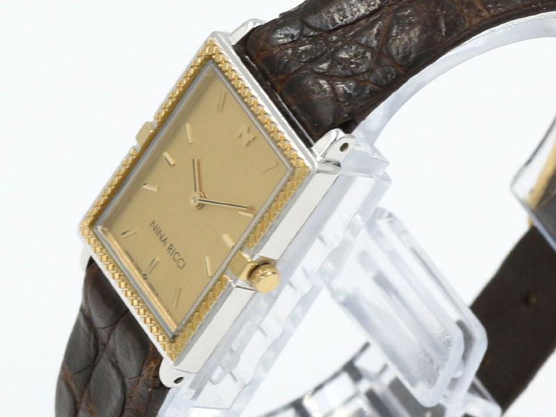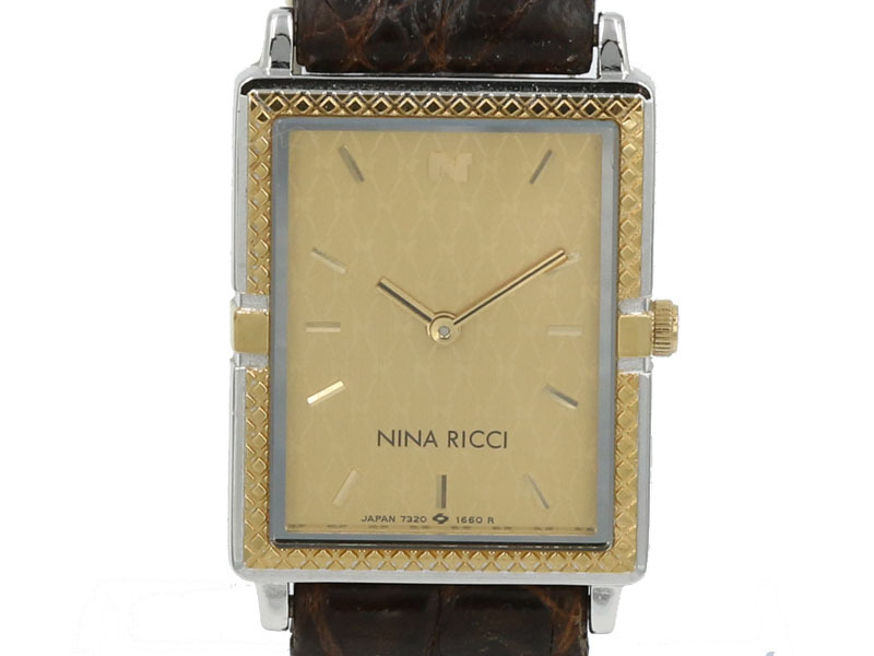 ニナ リッチは1998年、時計の世界に進出するにあたり、タイムアベニュー社をパートナーに選びました。時計製造発祥の地、スイスのニューシャテルを本拠とし、ここで最高の技術を持つ時計職人たちの手によって、ハイクオリティな時計が作られています。プリーツのような、ンドメイドのスティールブレスレットと、美しいカーブを描く円形ケースで、リボンモチーフに仕立てたミネラーゼスタイルは、まさにファッションセンスと職人技の結晶です。その他、ユニークなシステムを採用しチェンジャブルベゼル生み出すなど、ニナリッチは独創的な統計を次々に世に送り出し、世界を驚かせています。