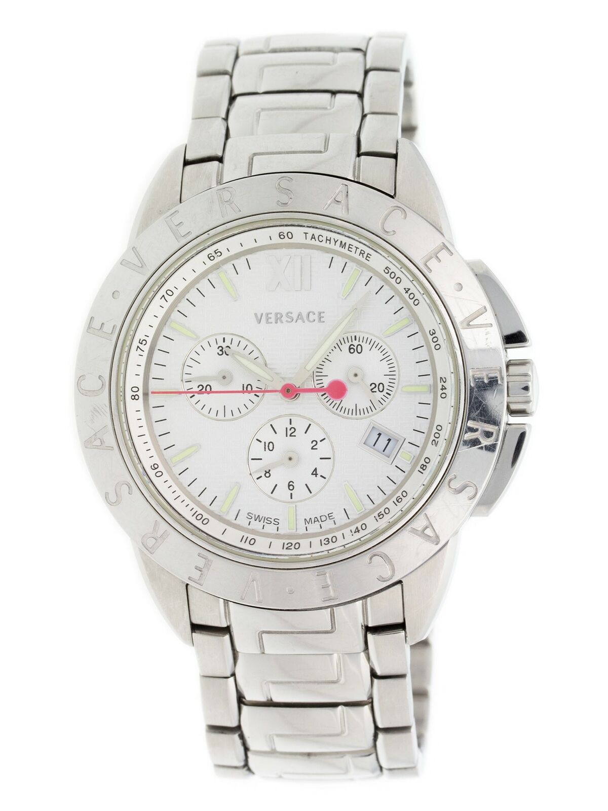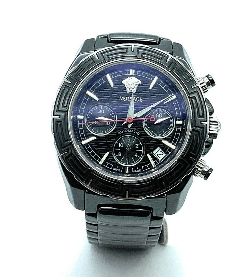 V-SPORTはヴェルサーチがはじめてファッションとスタイルをスポーティーな腕時計に融合しました。交換可能な3つのトップリングにねじ込み式リューズを備えたV-SPORTは、万能性とタフな特徴を併せ持ち、ライトグリーンの夜光インデックスと赤の秒針が時を問わず視認性を確保します。