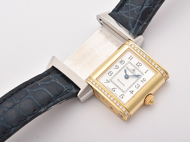 レベルソとはラテン語で「回転する」という意味を持ち、時計ディーラーのセザール・デ・トレイがポロ競技の選手から競技中の衝撃に耐える時計が欲しいという要望をジャック・ダヴィッド・ルクルトへ依頼したことが開発のきっかけとなっています。1931年には、ケースが180度反転し、スティックが当たっても時計のガラスを保護する仕組みを考案し製作されました。優美な長方形のフォルムや、ゴドロン装飾文字盤などのデザインは、アール・デコの特徴からインスパイアされており、登場から80年以上の歴史の中では膨大な量のコレクションが展開しています。その一つが両面ダイヤルにより2つの顔をもつデュオタイプで「レベルソ クラシック ミディアム デュオ スモールセコンド セカンドダイヤル」のように第2時間帯表示も行うGMTモデルは特に人気を博しました。また、「レベルソ トリビュート カレンダー」はトリプルカレンダーとムーンフェイズ機能を両面ダイヤルで表示されるようになり「レベルソグランドコンプリケーション トリプティーク」では、両面に3つの顔を搭載しています。コンパクトなレディースモデルも多彩で、正統派ペアウォッチとしても人気を誇っています。